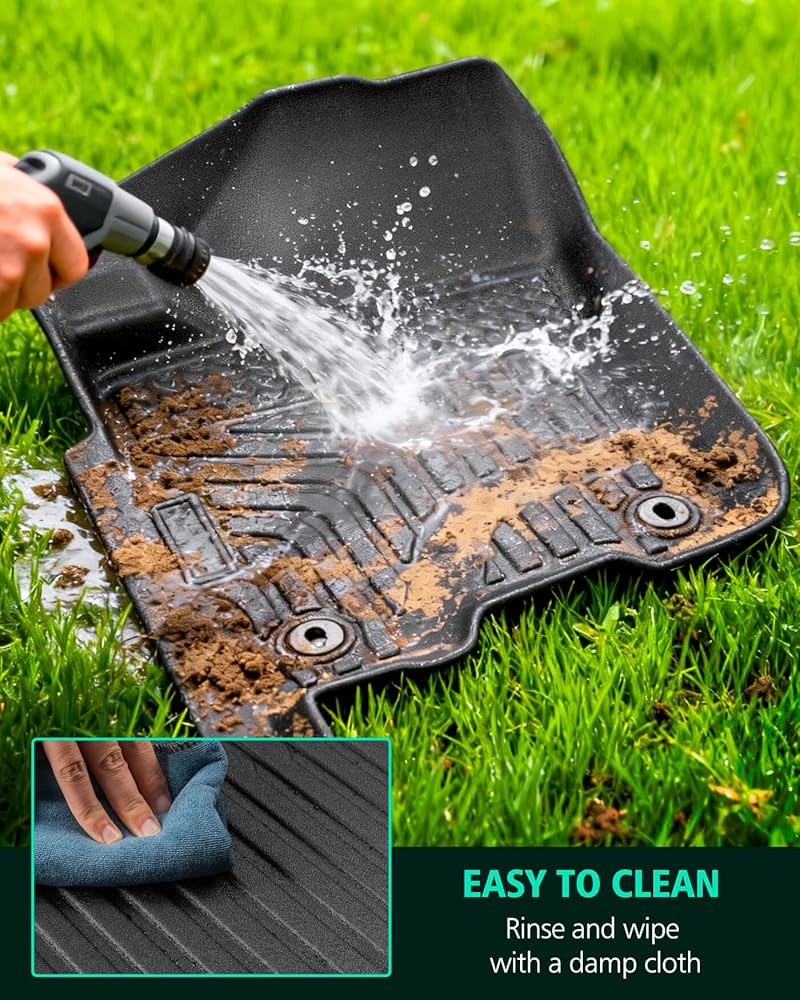 Easy To Clean: These non-slip truck floor mats for Titan can be quickly rinsed or wiped with a damp cloth to remove dirt and debris. The textured, skid-resistant surface keeps the automotive floor mats in place while enhancing the interior's appearance with a sleek, professional look