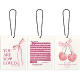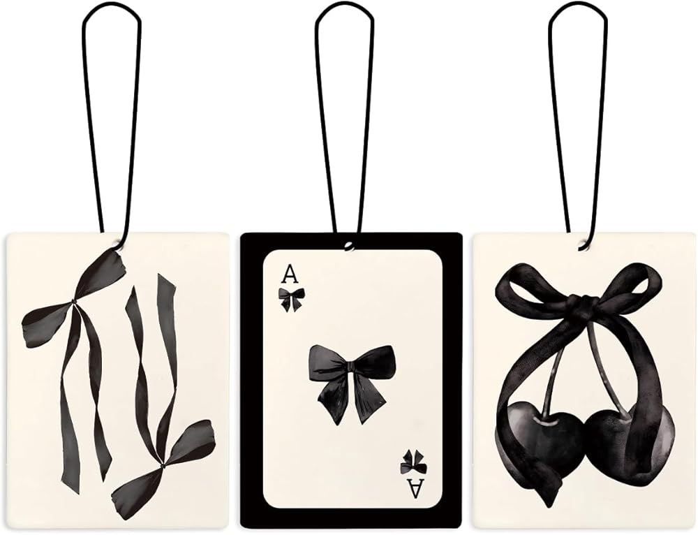 Cute Preppy Cherry Bow Trendy Car Air Freshener Hanging 3Pcs, Preppy Coquette Black Bow Air Freshener for Cars Closet Drawer or Books, Funny Car Accessories Mirror Decor for Women