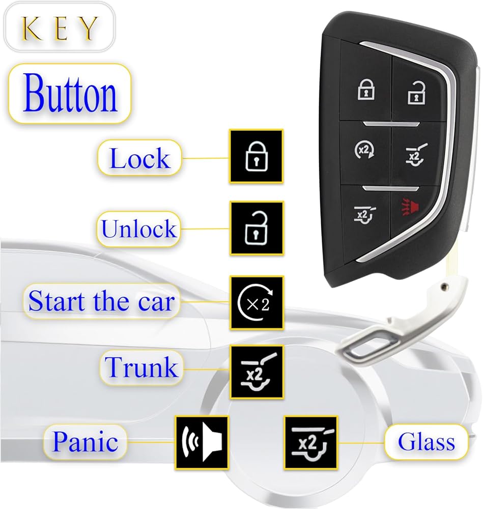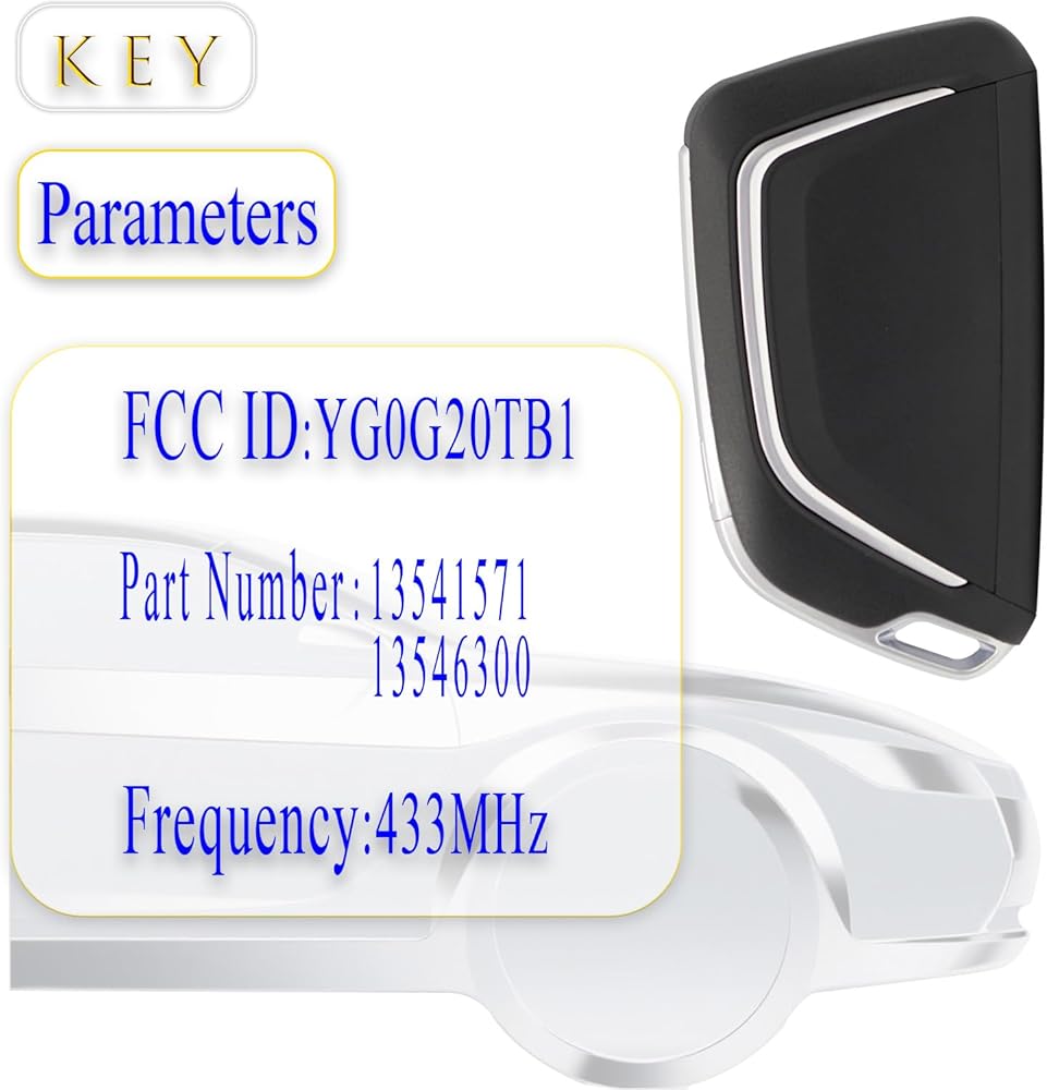 COMPATIBLE VEHICLES:Compatible with FCC ID:YG0G20TB1,Part Number:13541571 13546300,Frequency:433MHz,4 Buttons,This replacement key fob is compatible with Cadillac Escalade 2021-2024.