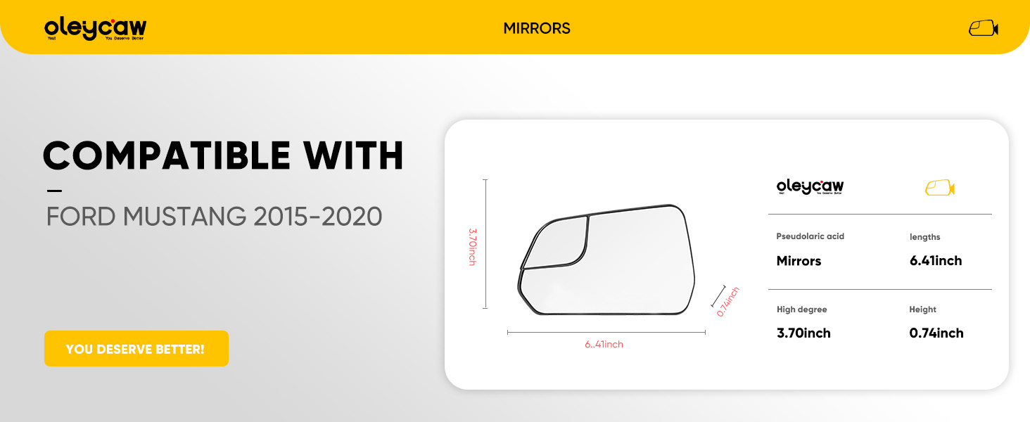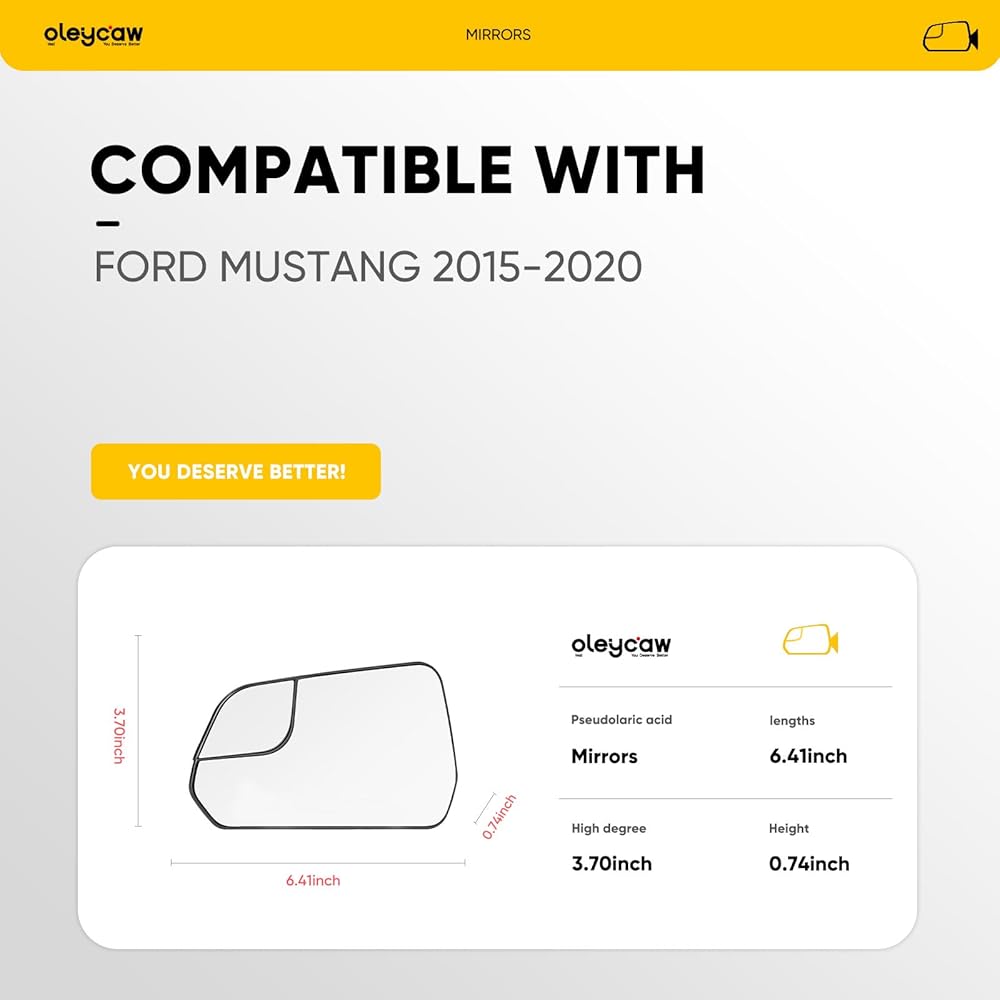 Stable fit: Mirrors for ford mustang adopt high toughness ABS material with precise fit. The driver side view mirror is firmly attached to the side mirror glass assembly at high speeds