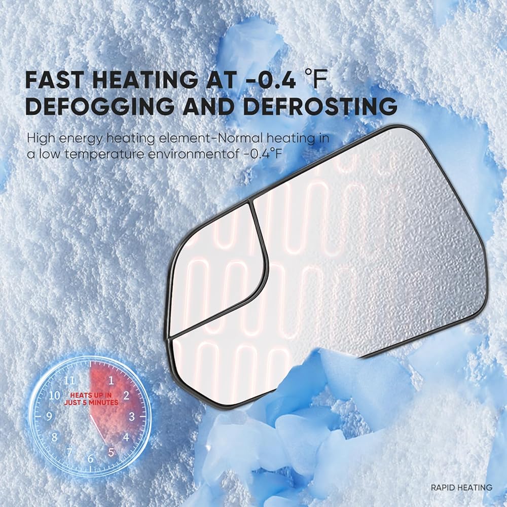 Rapid Heating: Mirror for ford mustang driver side with power heated, fast defogging and defrosting