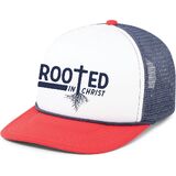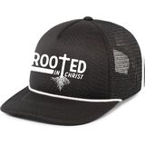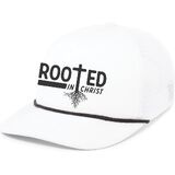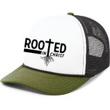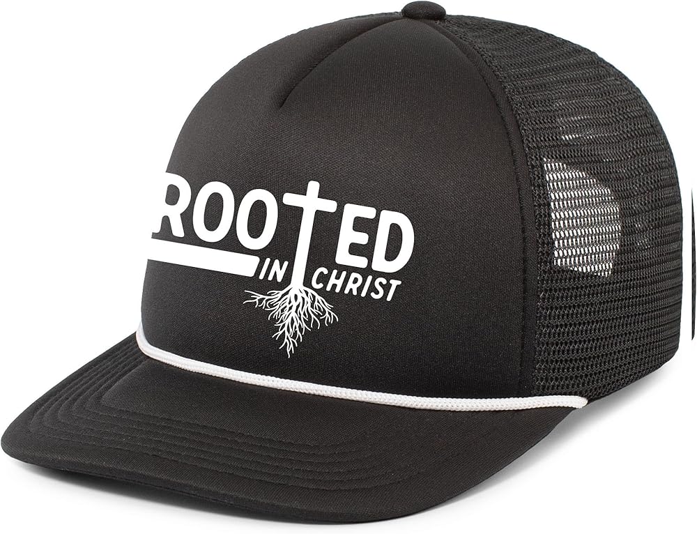 DESIGN: Mens Christian Rooted In Christ Embroidered Rope Hat Foam Front Mesh Back Trucker Hat