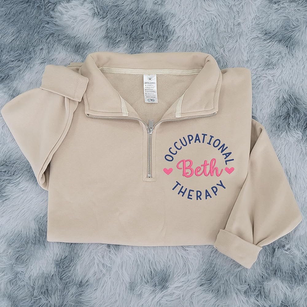 Chillever Personalized Embroidered Occupational Therapy Quarter Zip Sweatshirt, Custom Name on Sleeve with Heart, Personalized Gift for Occupational Therapist, Student Graduation Gifts