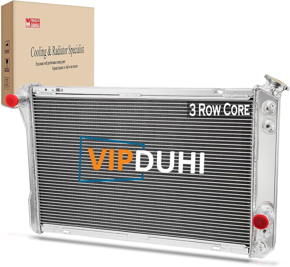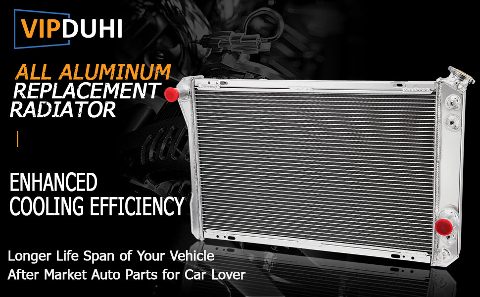 High Cooling Efficiency: VIPDUHI radiator cooling rows are spaced 3/8'' apart, giving you 25% more rows within the core, 14-16 cooling fins per inch, giving you approximately 1500 more cooling fins, provides 30% more cooling capacity