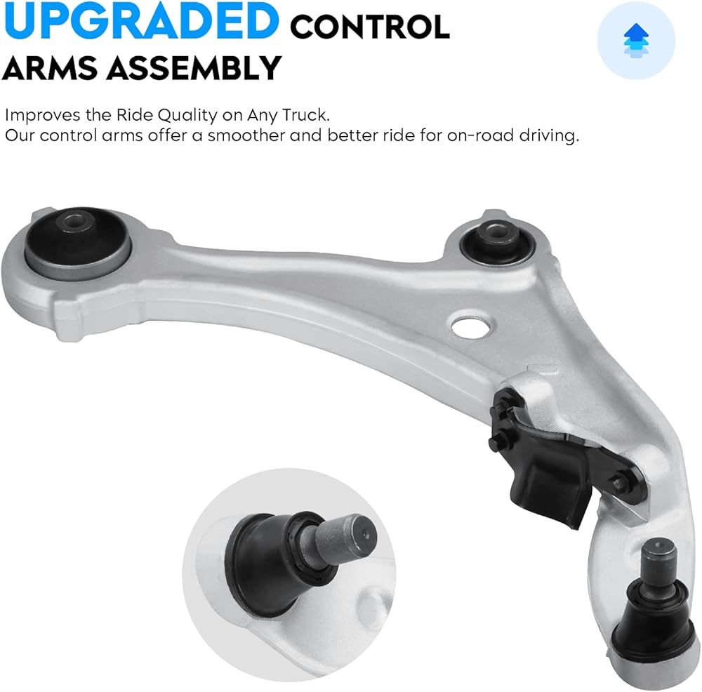 - Kit Includes: 1x Front Lower Control Arm with Ball Joint (passenger), 1x Front Lower Control Arm with Ball Joint (driver)