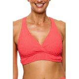 The Next by Athena 25 Minute Bikini Sport Bra Swimsuit Top is a customer favorite with supportive styling designed to move with you. This pull over, wrap front bra has soft cups, adjustable X-back straps with hook closure in back. This style is available in B/C and D cup!
