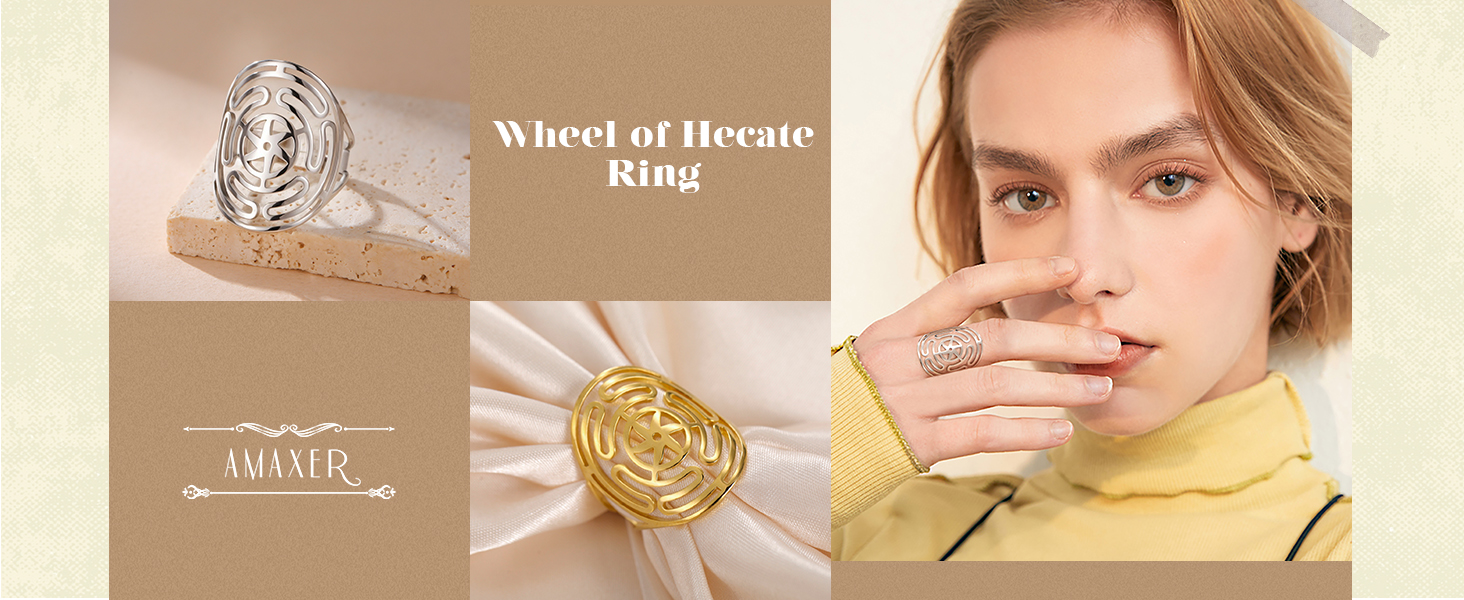 Hecate was an Ancient Greek deity, the ruler of the sky, sea and earth. She is known for her Triple Goddess aspect in that she goes through the three phases of female life: Maiden, Mother, and Crone. She is a protective Goddess who provides blessings and prosperity to the family. Hecate was originally the guardian of the crossroads, but evolved into the goddess of magic and sorcery. This history of Hecate reflects in the uses and symbolism of the wheel symbol