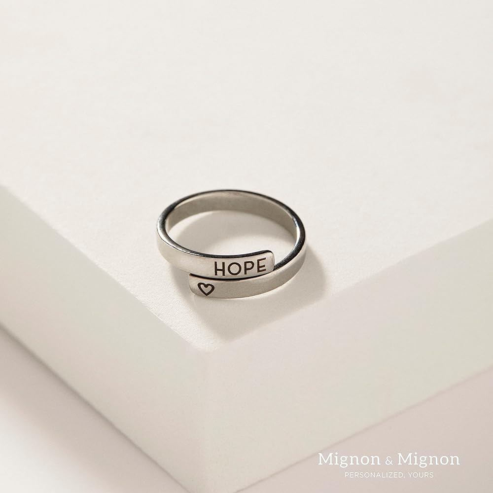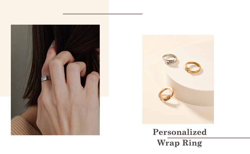 MignonandMignon Personalized Initials Wrap Ring, Custom Stacking Ring with Names, Dates, or Messages, Adjustable, Promise or Friendship Ring, Gifts for Women – RWB