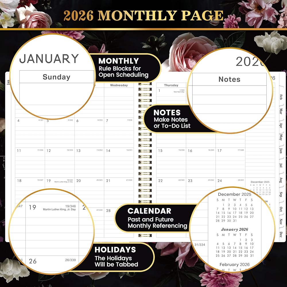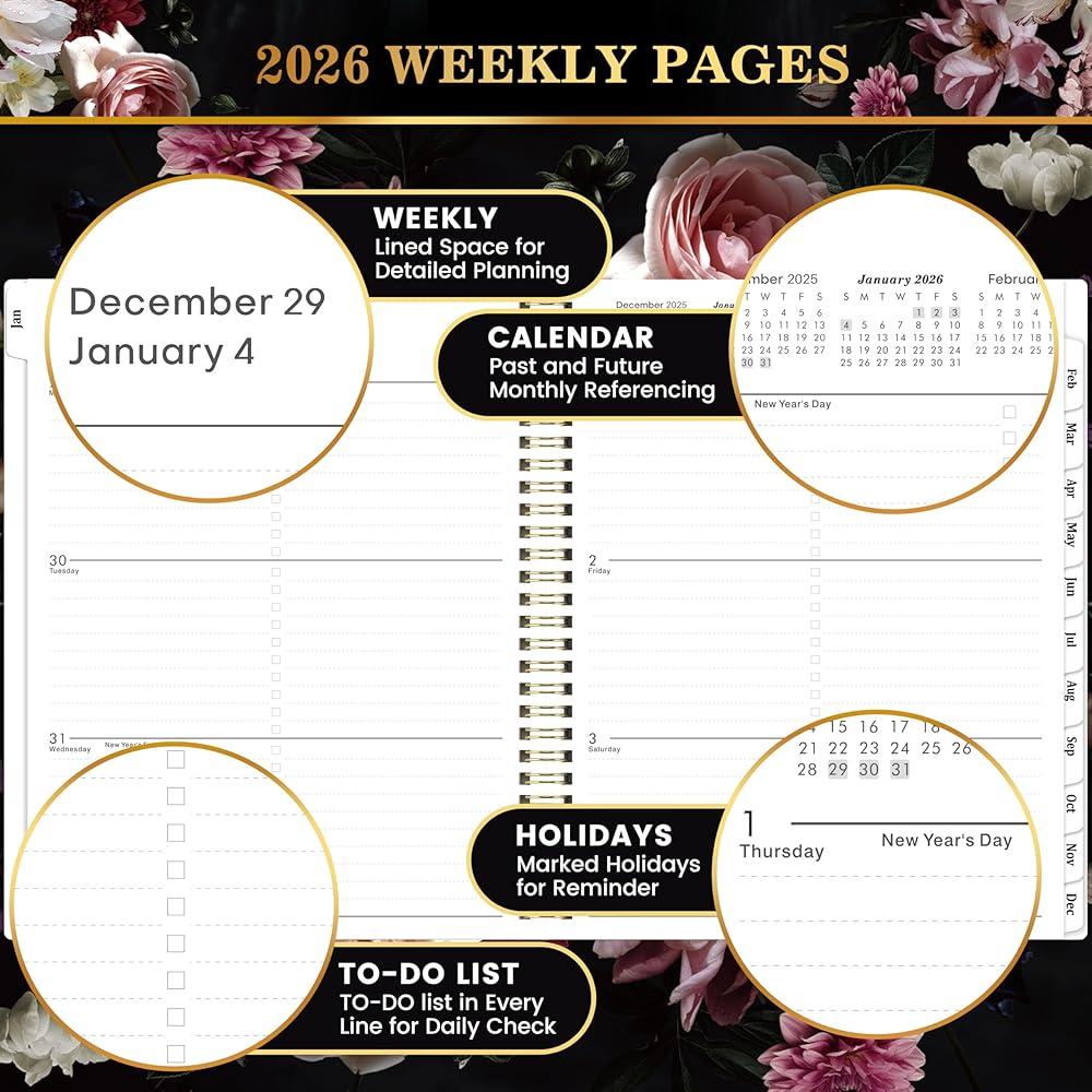 Decoration or Gift - This 2026 planner is made of beautiful bronzing pattern cover and thick paper which well providing ink-bleeding , therefore, it not only can decorate your life but also can be as a gift to your love, friends, and families.