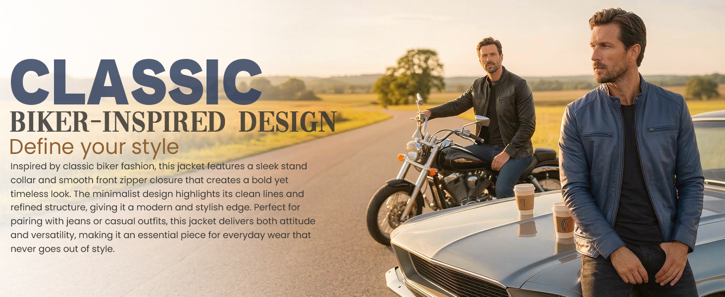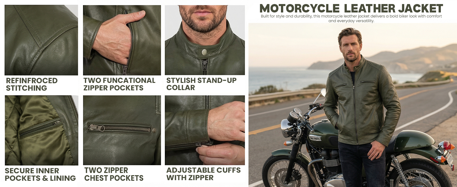 Sleek front zipper, snap-tab collar, and zipper cuffs give a timeless cafe racer look. Perfect for motorcycle rides, casual outings, or stylish evenings.