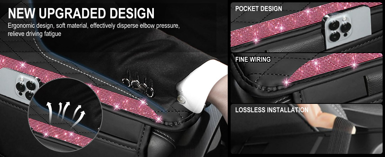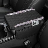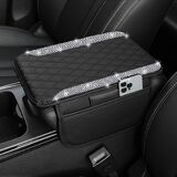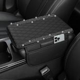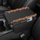 🛡️【Premium Leather & Protective Function】Made of high-quality microfiber leather and durable rhinestones, this car armrest cushion protector safeguards your original armrest from scratches, stains, wear and tear, and pet claws. It preserves the look of your car's interior while providing a soft, comfortable surface for your arm.
