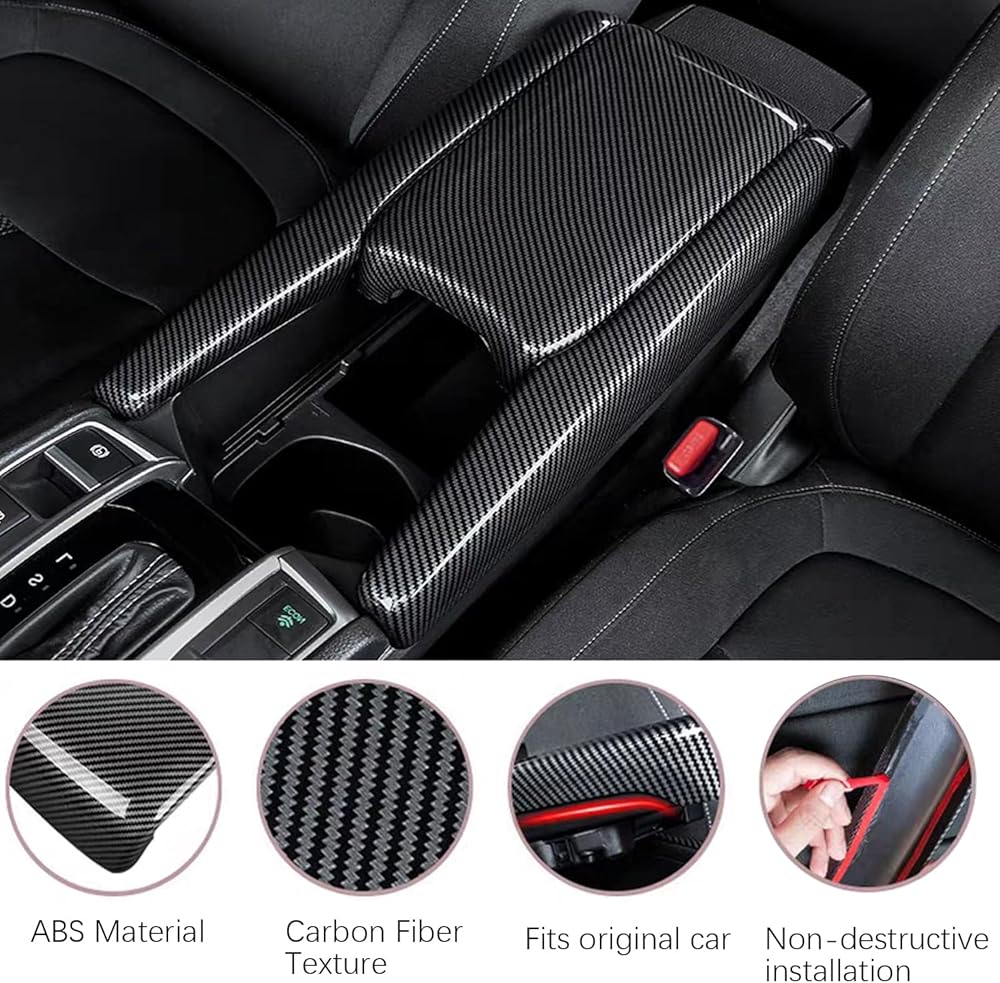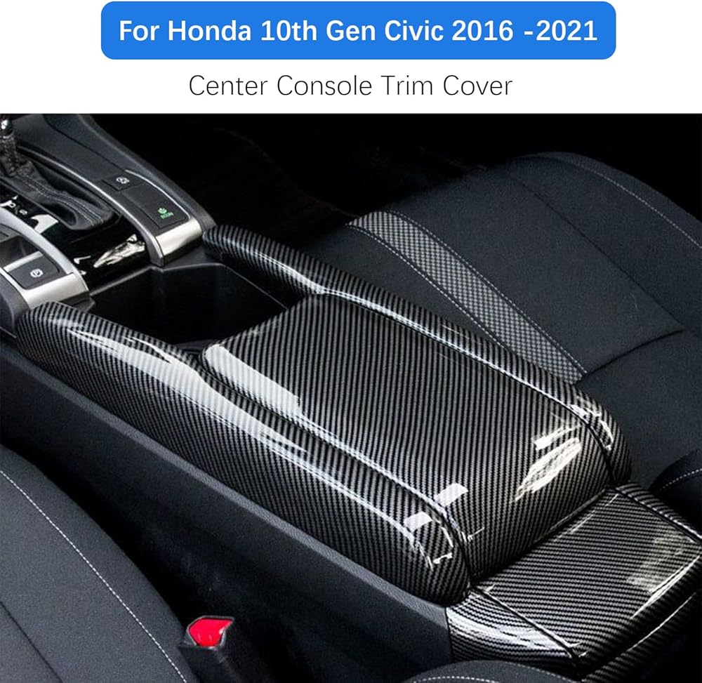 Car Interior Center Armrest Box Cover Console Box Storage Box Trim Covers Auto Accessories for Honda 10th Gen Civic 2016 2017 2018 2019 2020 2021 (Carbon Fiber)