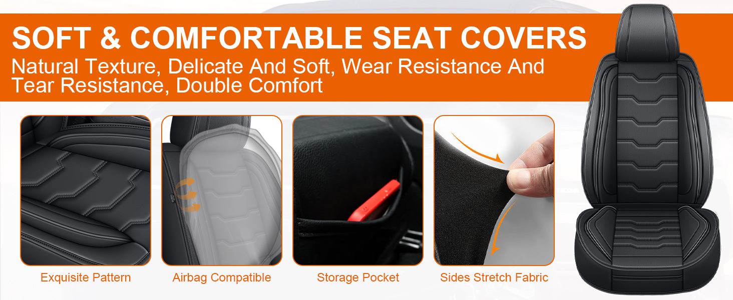 🚚【Smart Storage & Support】Seat covers for toyota tacoma excel in storage design.Tacoma front seat covers back is equipped with 6 extended/widened pockets, plus 2 front seat pockets-8 total pockets.Compared to the original 2 pockets,storage capacity is increased by 400%,keeping small on-board items organized and your car clutter-free.Both driver and passenger seats feature ergonomic back support to effectively relieve fatigue during long drives,making every trip more relaxed and comfortable.
