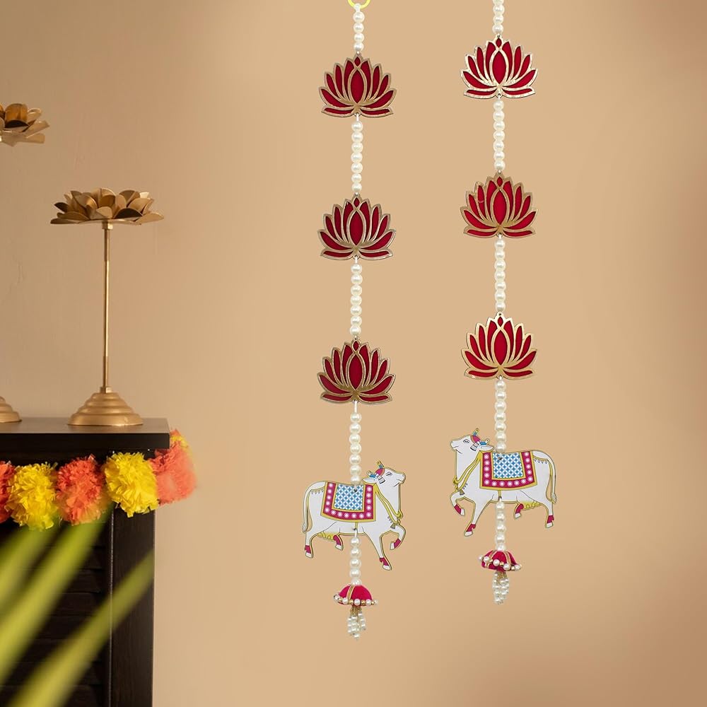 Package Contains: Set of 2 Hanging Lotus Decor pieces crafted to add a traditional and elegant touch to your home. Ideal for walls, pooja rooms, balconies, and festive decorations, these lightweight hangings feature fine detailing and easy installation. Perfect for housewarmings and gifting, they enhance any space with a serene decorative appeal.