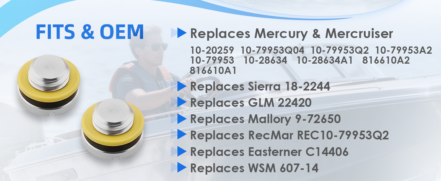 【Perfect Fit for Mercury & MerCruiser】 Directly replaces OEM parts for Mercury 10-79953Q2, 10-79953Q04, 10-79953A2, and Sierra 18-2244. Designed for 3/8 - 16 drain/fill holes on most MerCruiser stern drives and Mercury/Mariner outboards (excl. Verado).
