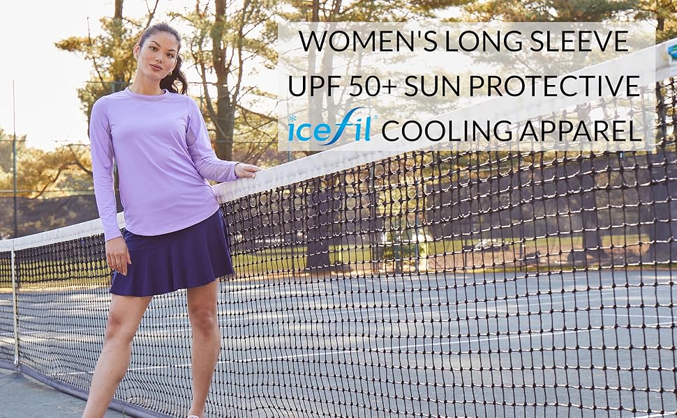 IBKUL Athleisure Wear Sun Protective UPF 50 Icefil Cooling Tech Long Sleeve Crew Neck Top with Under Arm Mesh – 83000 Peri Solid S Blue
