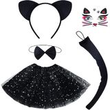 The lively black cat headband and bow tie add an animalistic touch and enhance your tiger's fashionable look,while the face stickers create fun animal details on your face.Wearing the tail adds a playful finishing touch to your outfit.