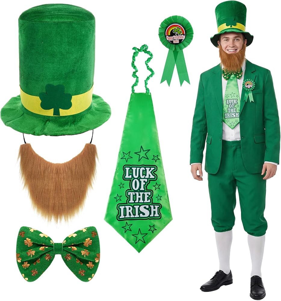 Everything in One Package: As a complete Irish party costume kit, it saves you the hassle of buying separate items. You get a coordinated St. Patrick's Day Party Costume Suit in one purchase.