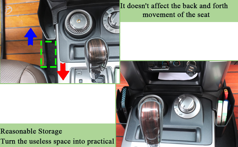 Strong Adhesive & Strip Design: Our center console storage box features robust adhesive and a strip design; The strip connects the sides of the box, and the heavy-duty adhesive ensures it stays securely in place without falling or swaying