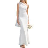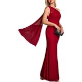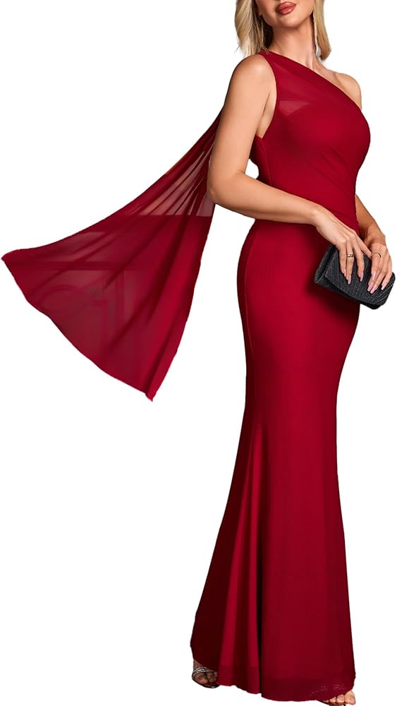 Off the shoulder dresses for women, bodycon maxi dress, ruched dresses for women, long dresses for women, one shoulder design is complemented by a flowy streamer that gracefully cascades down, adding a dynamic flair to the overall look, blending elegance with romantic. Color options: black cocktail dress, red dresses for women valentines day, light blue dress for women, white summer dresses for women