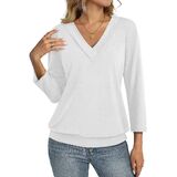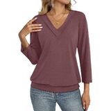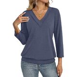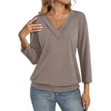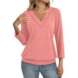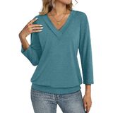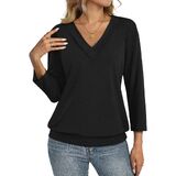Feature: 3/4 Sleeve Shirts, V Neck Tops, Banded Bottom, Solid Color, Loose Fit, Basic Tunic Tops, Casual Chic Style. Banded bottom top comes with a fashionable hem easy to cover your belly and back area