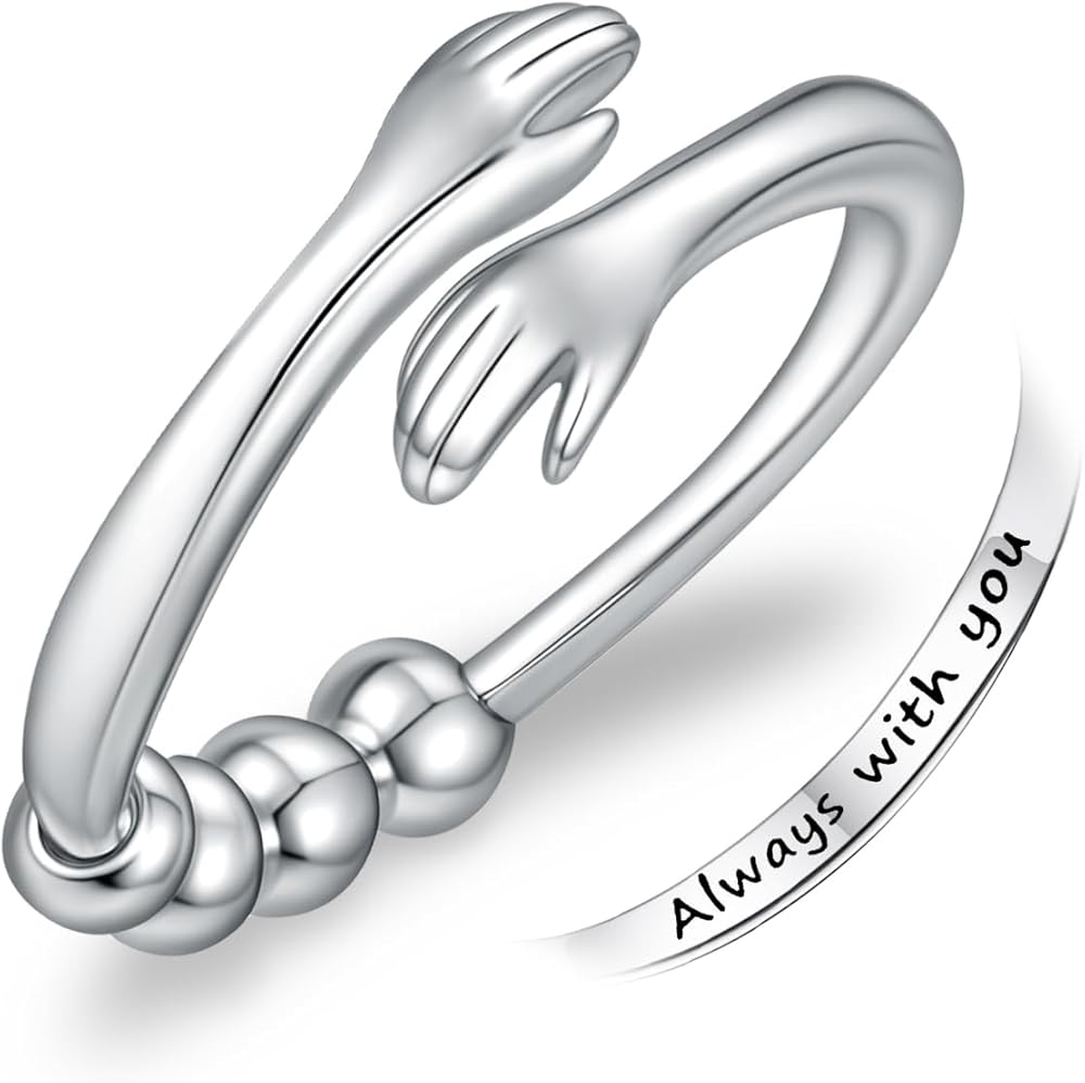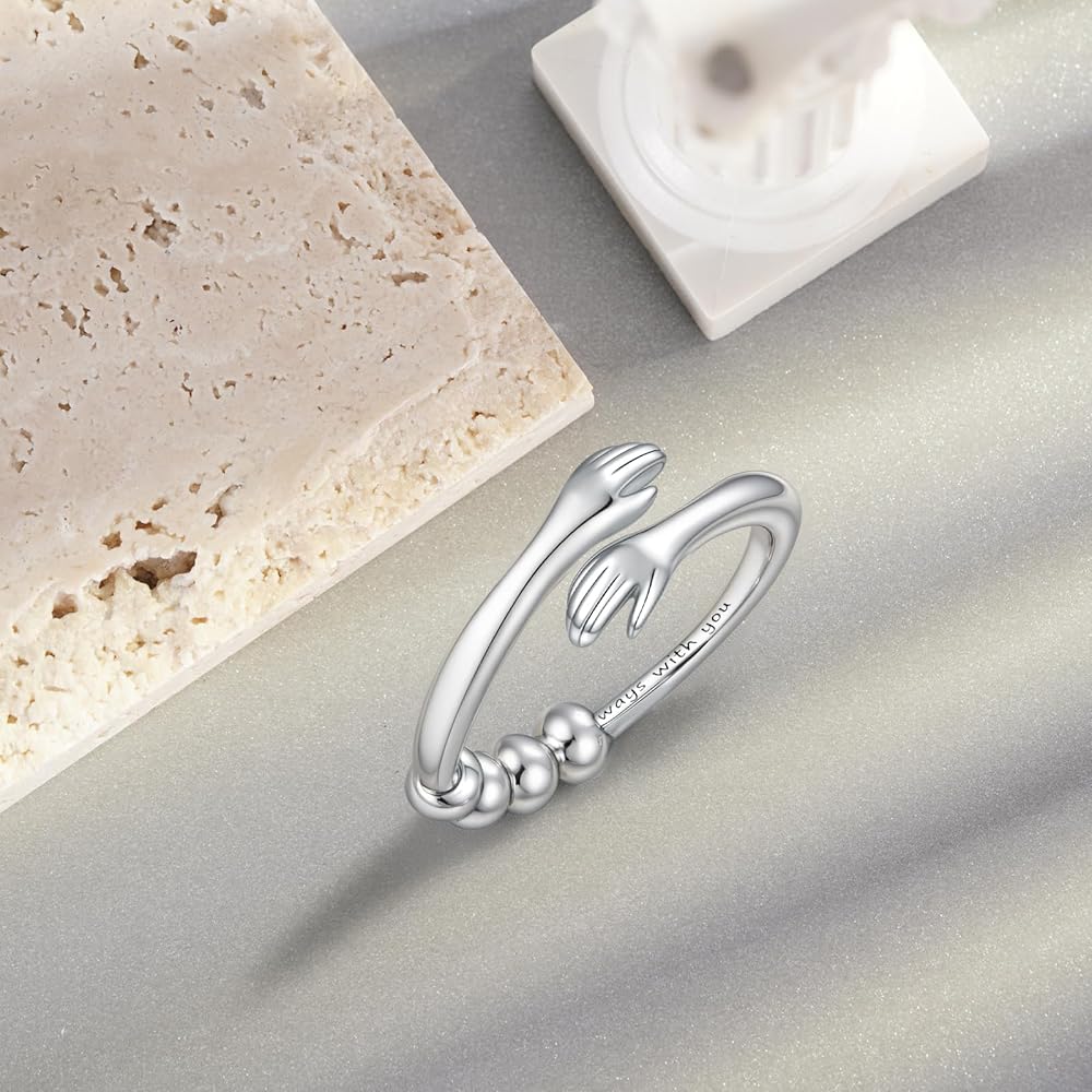 Anxiety Ring Design: This anxiety rings for women is inspired by the embrace, which symbolizes care, blessing, love and protection, and is engraved on the arm with the words “Always with you”. When you feel anxious, nervous or stressed, you can rotate the beads on the ring to help alleviate these negative feelings, calm you down and keep you in a peaceful mood.