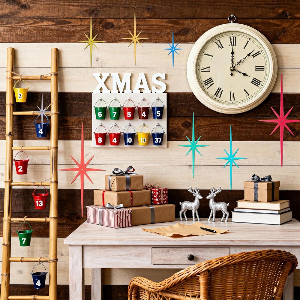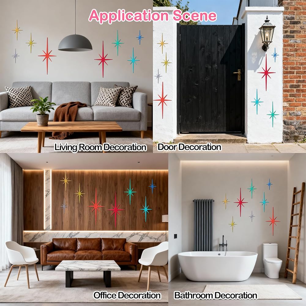 • 【Unique Design】Our starburst wall decor showcases a retro design that effortlessly complements mid century modern decor. The unique wall decor, vibrant colors—red, yellow, green, and silver—add a funky wall decor element, enhancing your retro room decor and creating a cool wall decor vibe