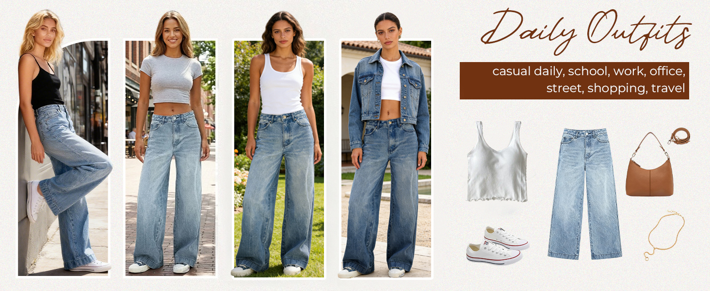【Easy to Match】 Y2K Streetwear jeans are perfect for pairing with tank tops, t-shirts, crop tops, camisoles, trainers, flats or heels, Wide Leg jeans are fashion outfits in daily wear, club, dating, school, party, vacation and so on, a must-have item for spring, summer, fall and winter.making you the centre of attention at any occasion.