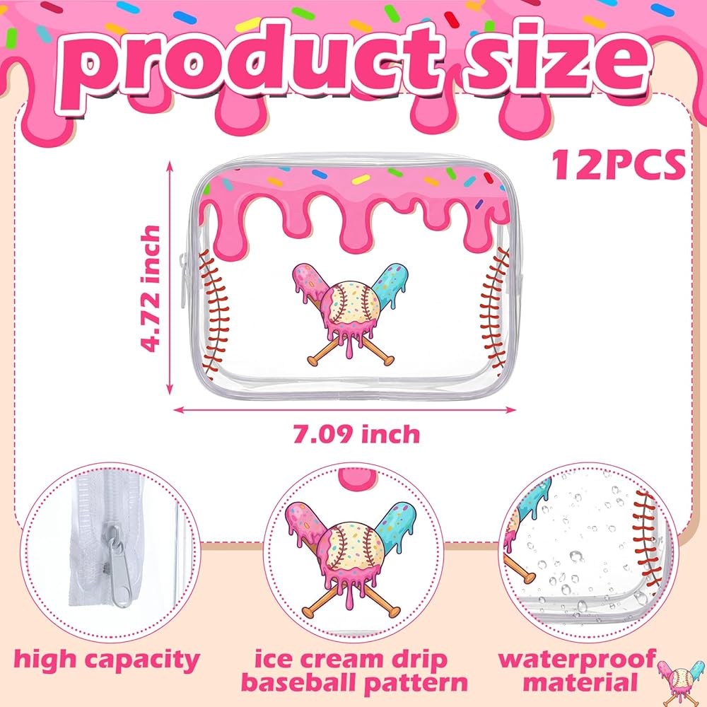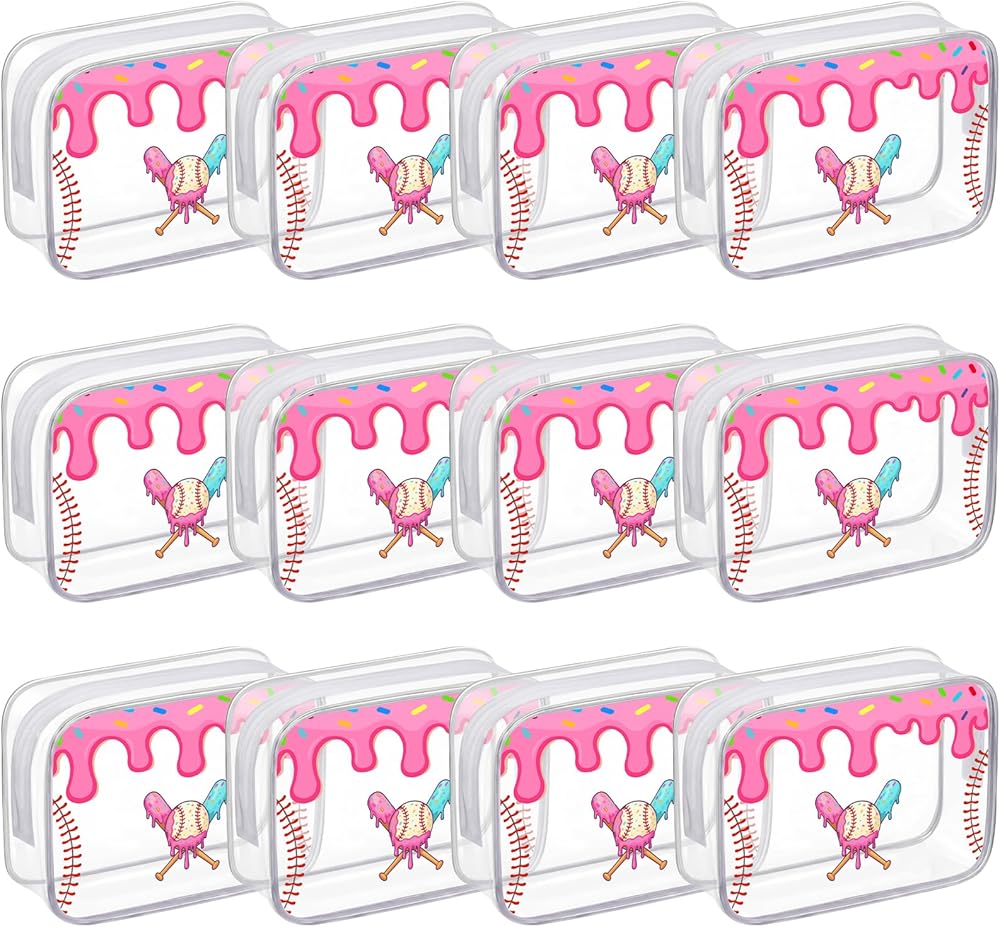 • Complete Package Contents: this set includes 12 pink baseball-themed clear PVC waterproof zipper bags, ready to use right away for easy organization; These ice cream drip baseball theme cosmetic bags in bulk are suitable for sharing or long-term use
