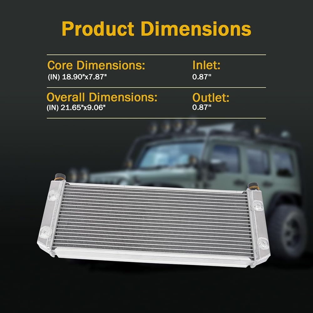 - Core Size:18.90"x7.87"; Overall Size:21.65"x9.06".Outlet Diameter:0.87";Inlet Diameter:0.87".