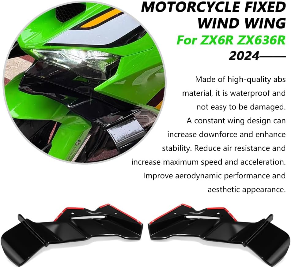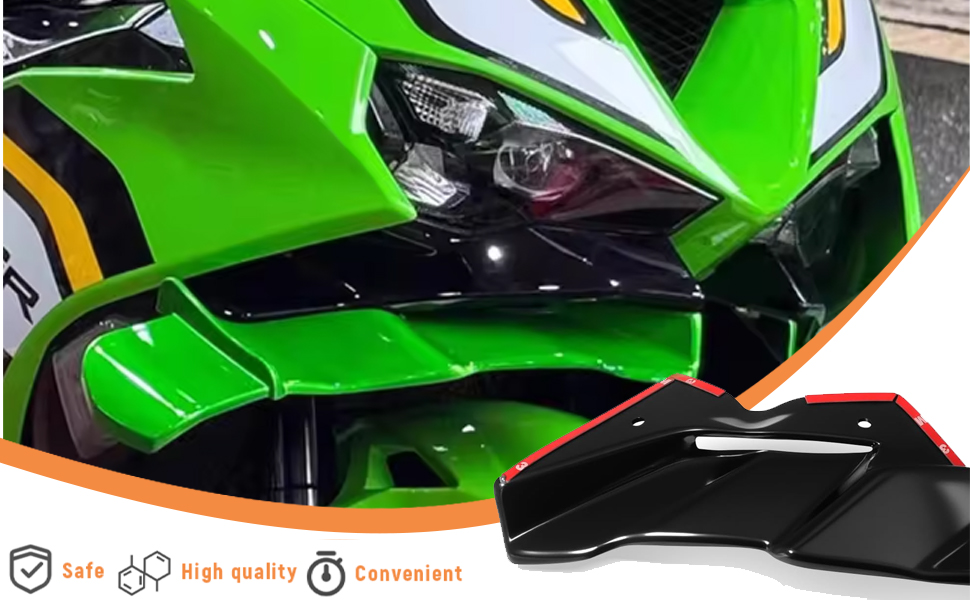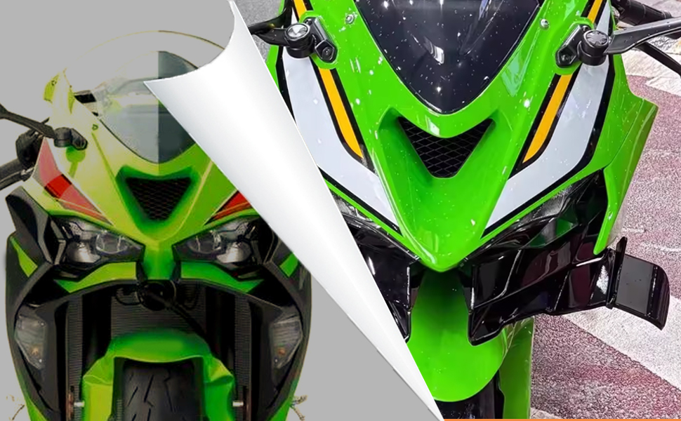 Easy to install: Before installation, make sure the surface of your motorcycle is clean, peel off the adhesive sticker and stick the motorcycle wing side spoiler in the position you want.