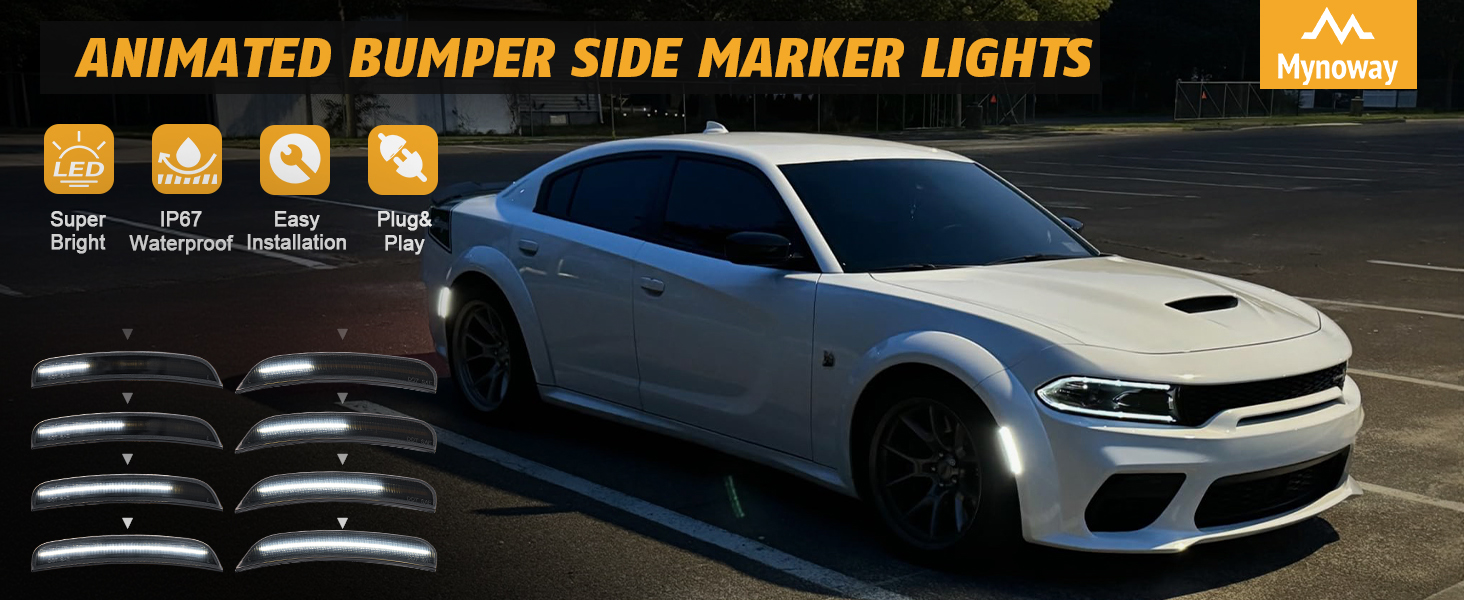 【TRUE PLUG-AND-PLAY INSTALLATION】: Direct replacement for OEM side markers. Includes all necessary components for a simple, tool-free installation—no cutting, splicing, or coding required. Complete 4-piece set for front and rear.