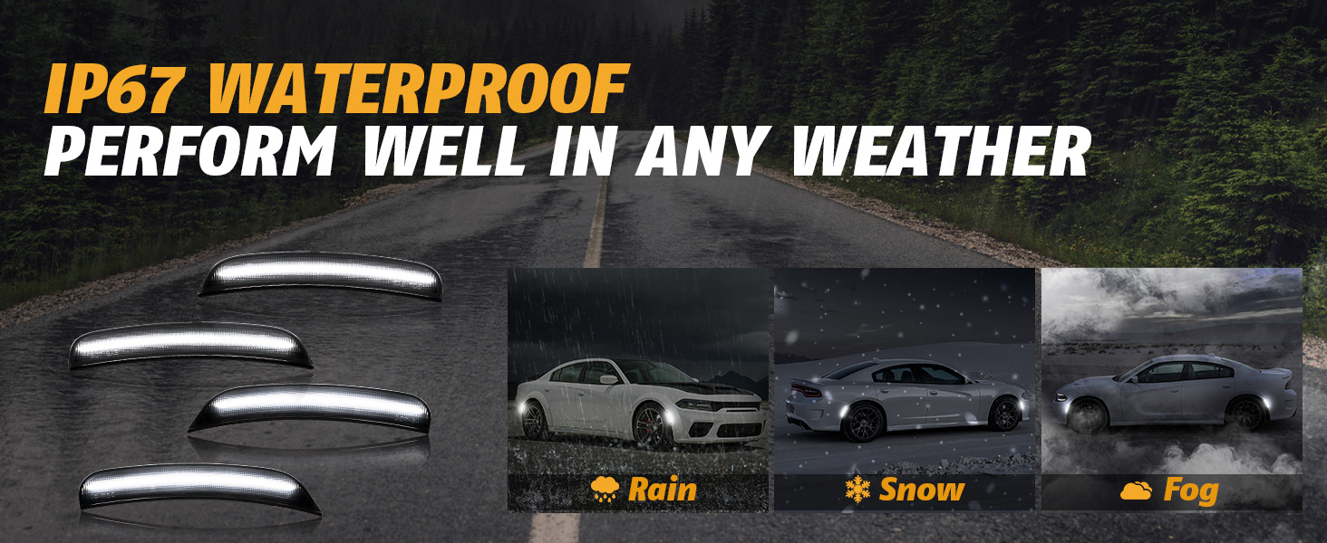 【ENHANCED DURABILITY & VISIBILITY】: Built with high-grade LED chips and weather-resistant housing for long-lasting performance in all conditions. Bright, uniform light improves side visibility for added safety and a sharp, modern style.