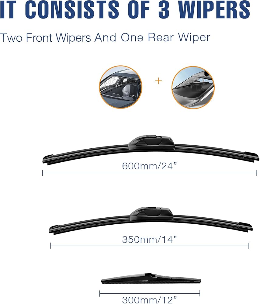 3 Wipers 24"/14"/12" Windshield Wiper Blades Replacement for Fiat 500 2019-2011 Automative Windshield Wiper Blades 24"+14" Front Wipers with 12" Rear Wiper Blade Set