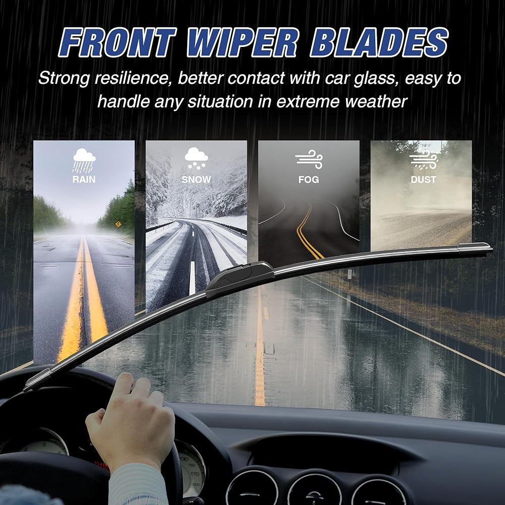 【AAAAA Natural Rubber】Excellent performance in various weather and seasons regardless of the harsh winter or scorching summer.Compared to traditional wipers, our wipers are less prone to cracking and deformation.