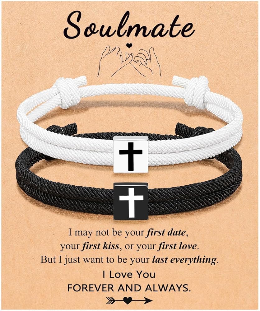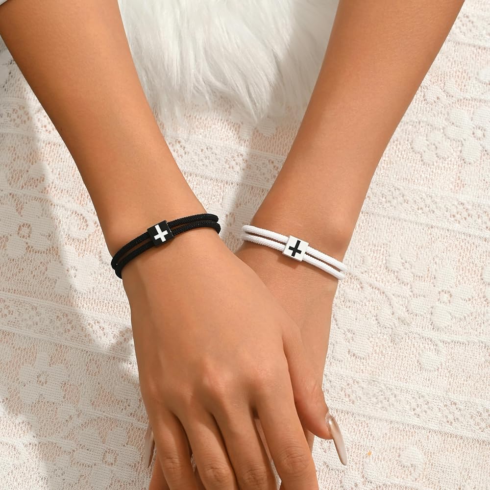 Design:The cross symbolizes faith and eternal guardianship. The black braided rope signifies steady and unwavering companionship as well as unbreakable protection, representing love that is as constant and firm as a rock; the white braided rope stands for a pure and flawless original intention and sincere, untainted affection. The combination of black and white represents the mutual love and inseparable bond between two people, making it an exclusive token to witness a lasting and steadfast relationship.