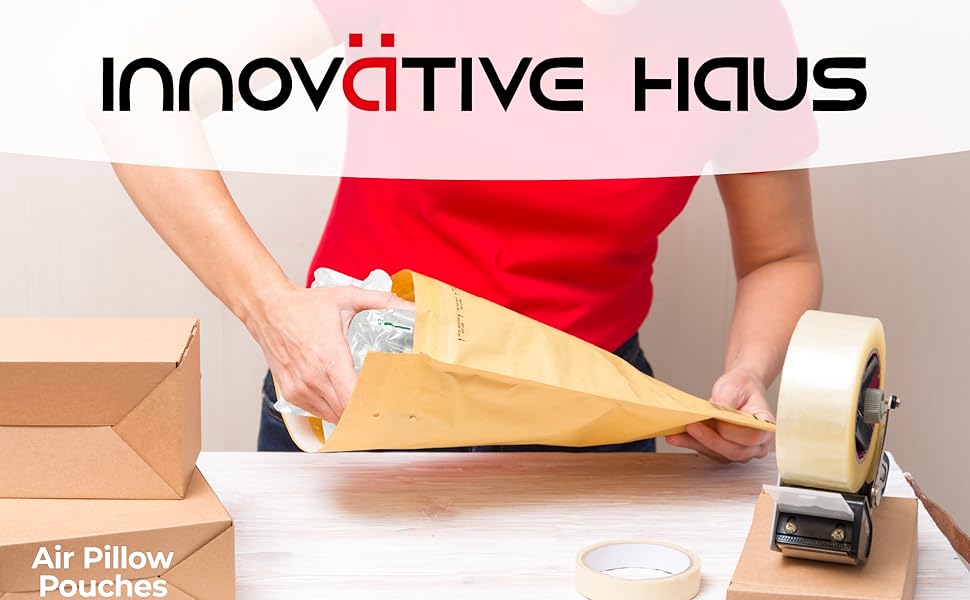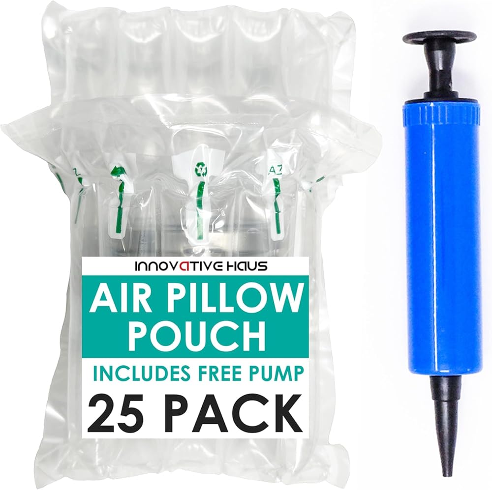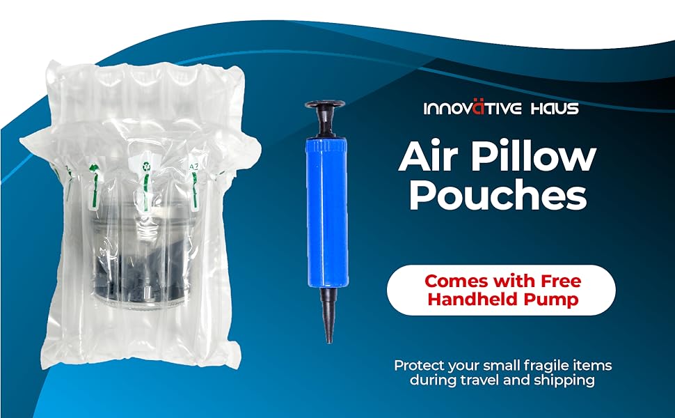 Innovative Haus Pack of 25 7 Inch x 8 Inch Inflatable Air Pillow Pouch Protectors with Free Pump for Heavy Duty Packing and Shipping Packaging Supplies. Protect Fragile Items for Moving and Storage