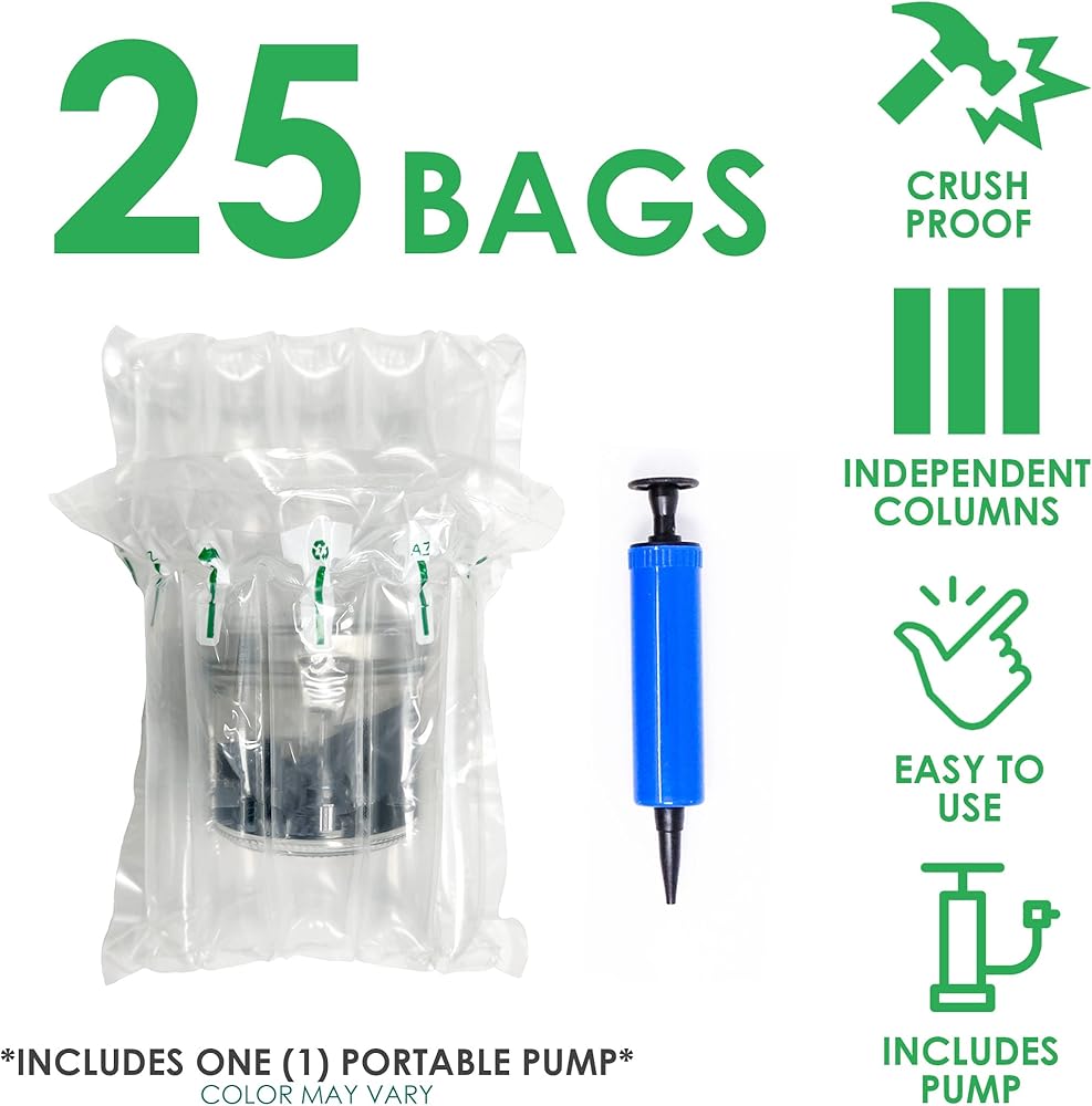Economical: Heavyweight bags are packaged in a frustration free bulk pack with the free handheld - air pump color varies. A cost effective way to protect your valuables. Eco friendly and a great packing supply alternative to packing peanuts, packaging foam, and honeycomb paper.