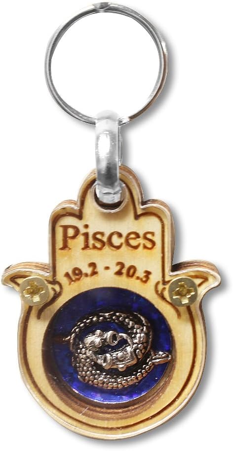 This cute and lighweight Hamsa-shaped wooden key chain is decorated with a metal zodiac charm. The key chain features a classic design. The key chain is a must-have item for yourself, or a thoughtful gift to a special person. Handmade in the holy land.