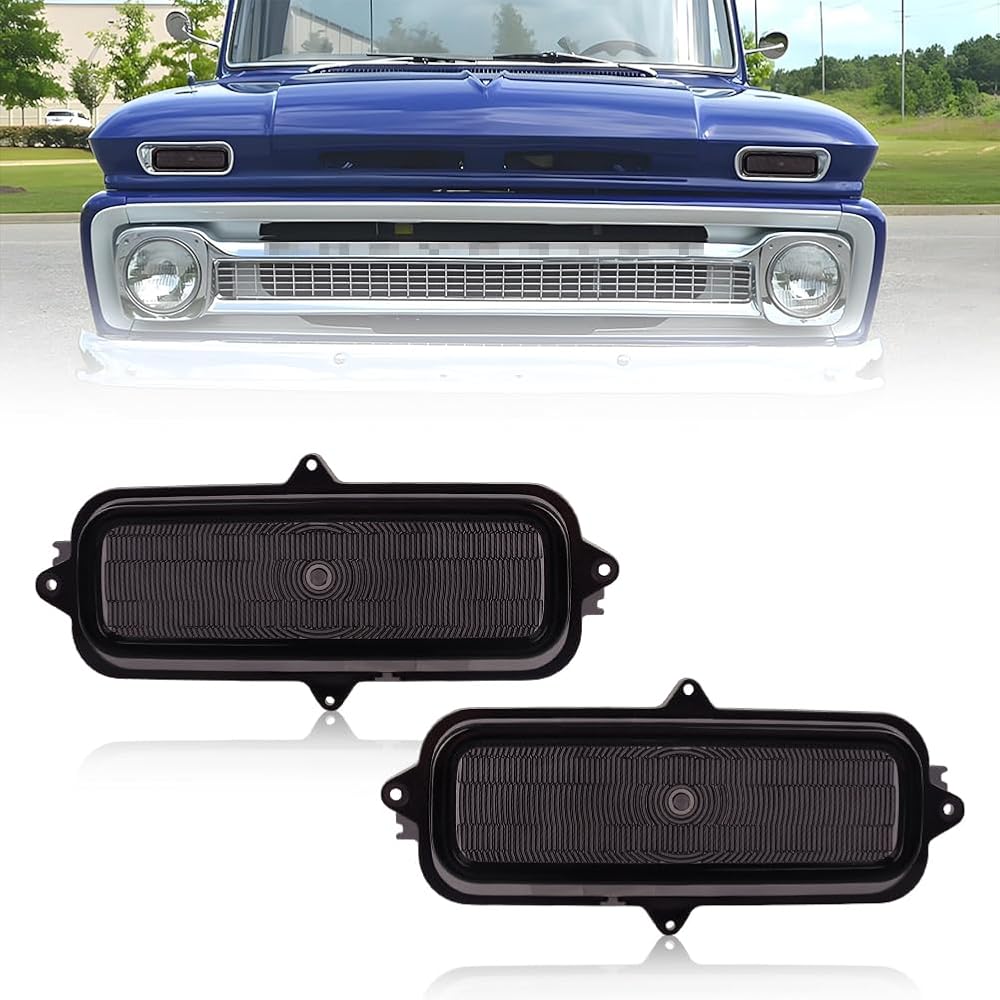 VYNTRAL Parking Corner Side Marker Light Housing Compatible with 1960 1961 1962 1963 1964 1965 1966 Chevro-let Pickup Truck, Turn Signal Marker Light Cover [No Bulbs], Smoked Lens