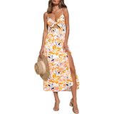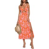 Tie Front V Neck with Feminine Cutout: Designed with a flattering twist-front bust and V neckline, this floral maxi dress features a subtle cutout detail that enhances your curves while creating an effortlessly feminine summer look.