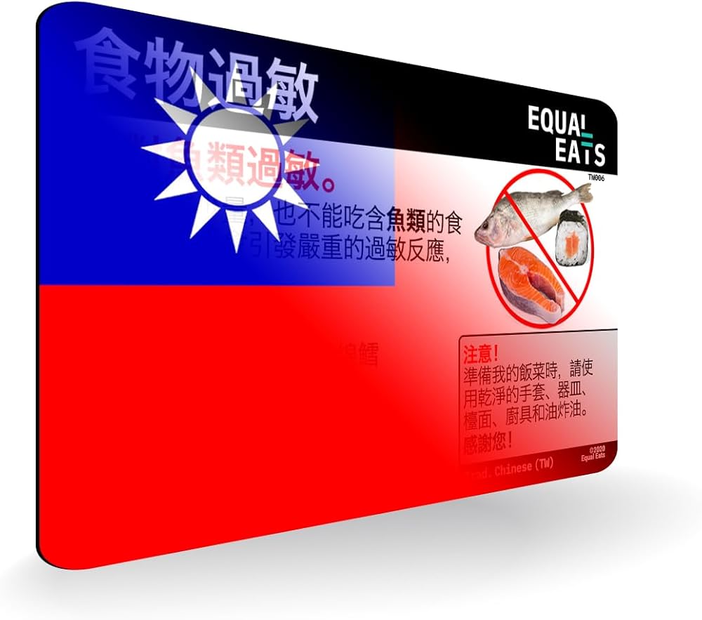 This translation card is intended to help travelers communicate the fact that they are allergic to fish in 50 different languages. This could be useful when dining out and ordering food. This travel allergy card features a durable plastic construction and is the size of a credit card. This food allergy card includes accurate and reviewed translations that can be used if you haven severe or life-threatening fish allergies.