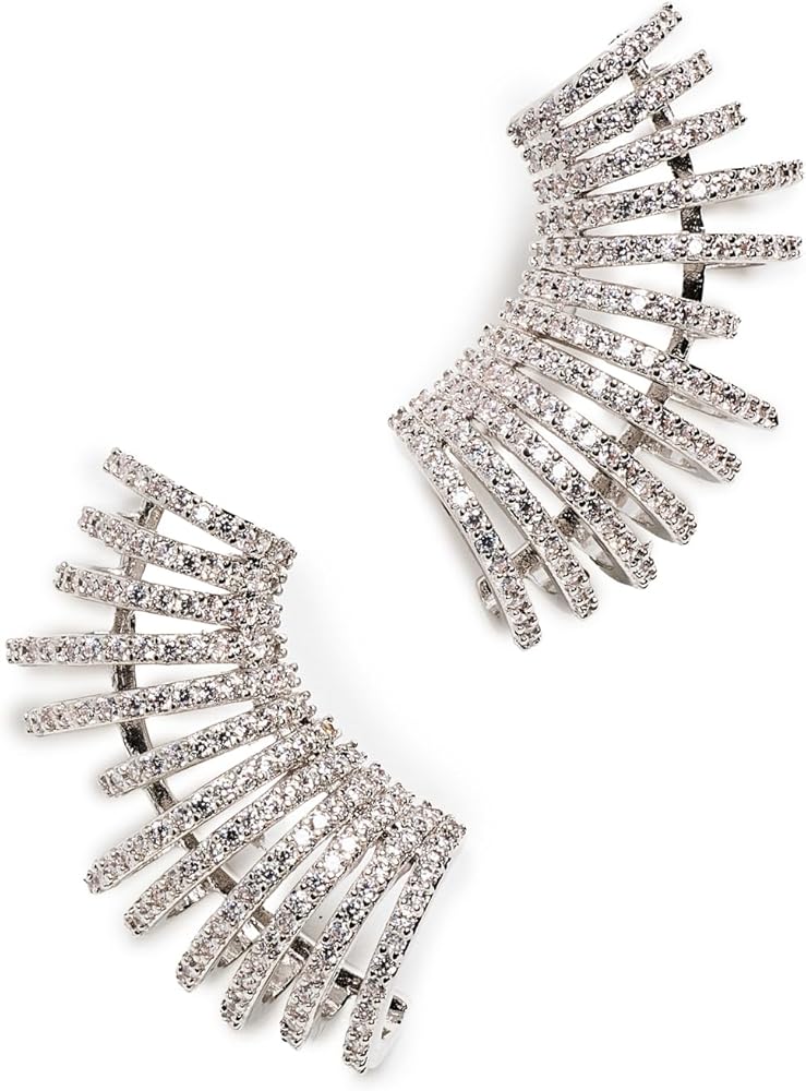 By Adina Eden Women's Pave Fancy Cage Stud Earrings, Silver, One Size