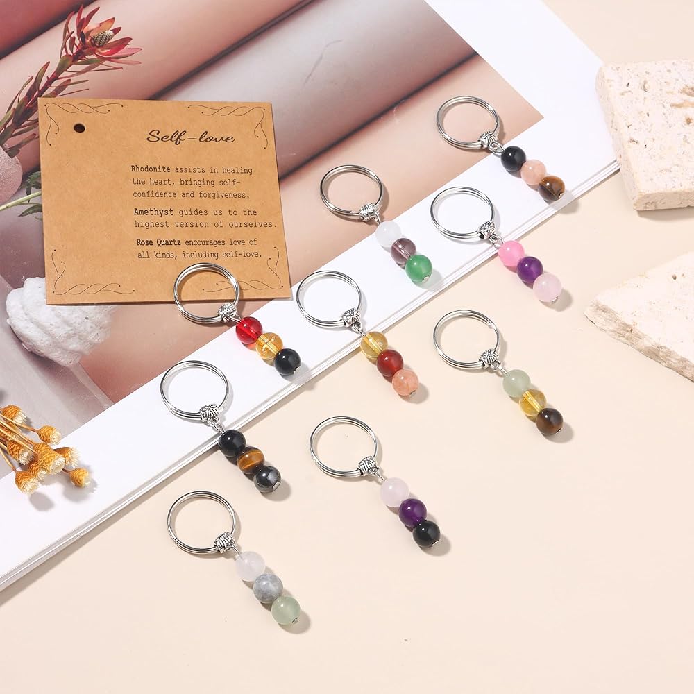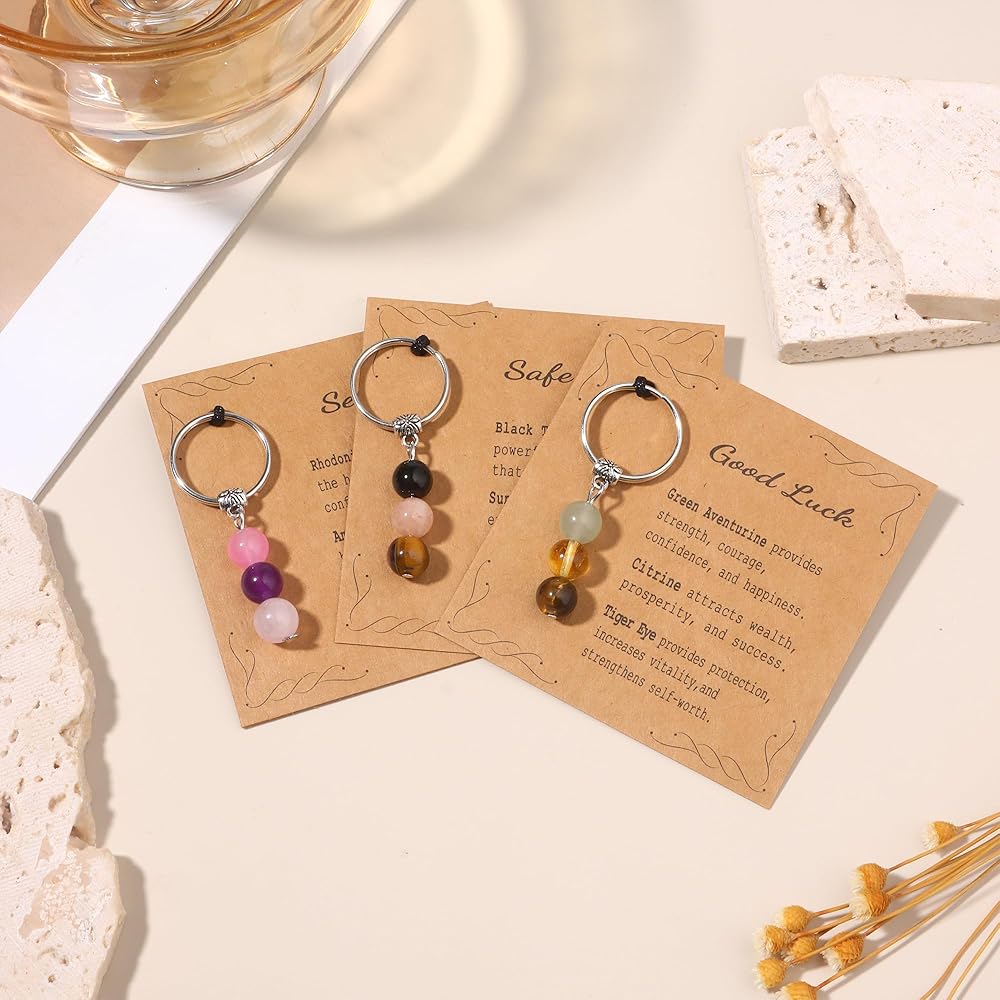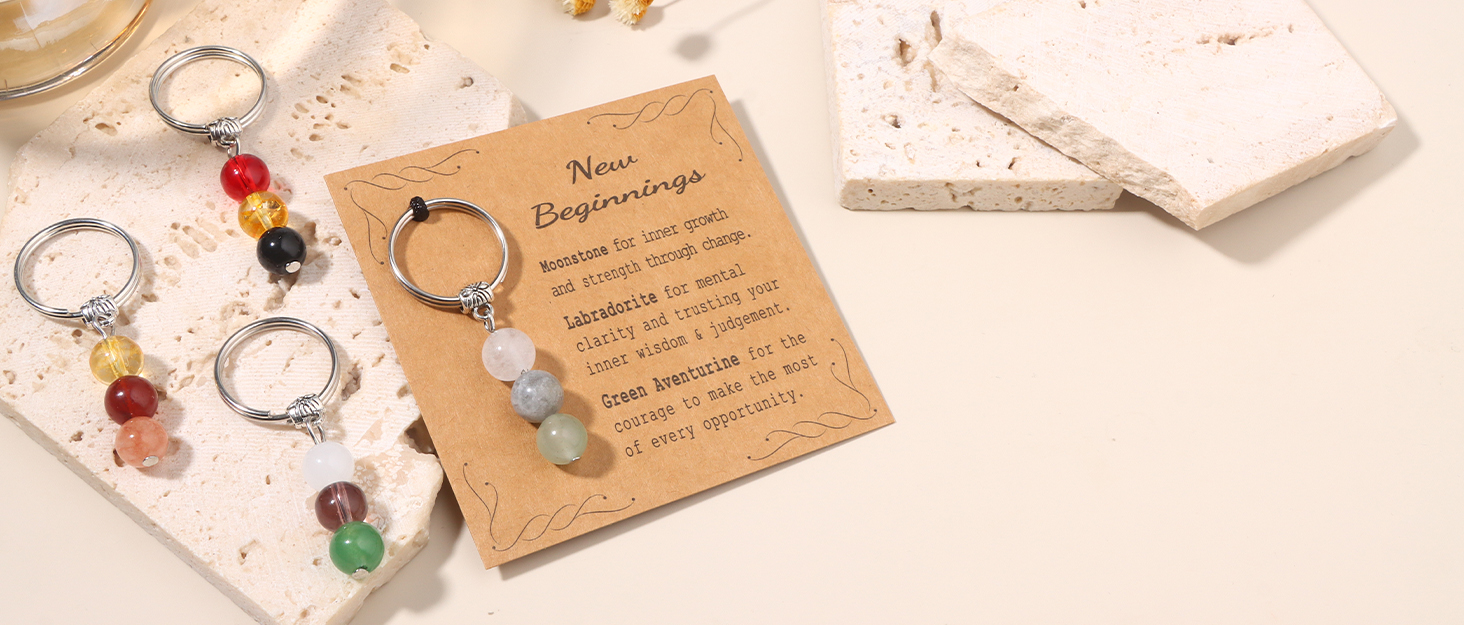 SIZE: The key ring outer diameter are 18mm. These new beginnings gifts for women comes with 3 crystal beads and a card describing each bead and their healing properties. These crystal keychains are perfect coworker gifts, nurse gifts, graduation gifts and natural life gifts