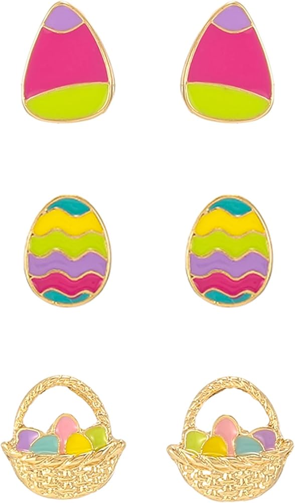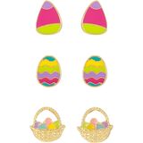 Festive Easter 3-Pair Stud Set – Embrace the spirit of spring with this charming earring collection featuring three delightful designs: colorful Easter eggs and a classic flower basket. Perfect for Easter celebrations, spring parties, or adding seasonal joy to your daily wardrobe!