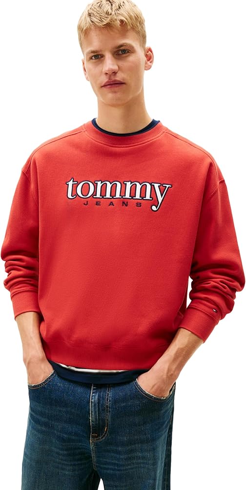Introducing the Crewneck Sweatshirt with two-tone embroidered logo from Tommy Jeans, featuring the iconic embroidered logo and cuff details, crafted from a premium blend of cotton and other fibers for unparalleled comfort. Complete with ribbed cuff, collar, and hem this crewneck sweatshirt offers both style and functionality. The soft medium weight construction ensures warmth without sacrificing breathability, making it perfect for everyday wear. With its regular fit design, this pullover strikes the ideal balance between comfort and style, flattering the silhouette while providing ample room for movement. Pair it effortlessly with your favorite Tommy Hilfiger shirts, tees, shorts, pants, jeans, jackets, or coats for a versatile and timeless look suitable for any occasion, whether casual or formal. Whether you're heading out for a day of leisure or hitting the gym, this sweatshirt is the ultimate go-to. Treat yourself or surprise a loved one with this versatile wardrobe staple, ideal for fathers, brothers, boyfriends, husbands, sons, or friends. Experience the unmatched quality and everyday style of Tommy Hilfiger with this must-have men's sweatshirt.