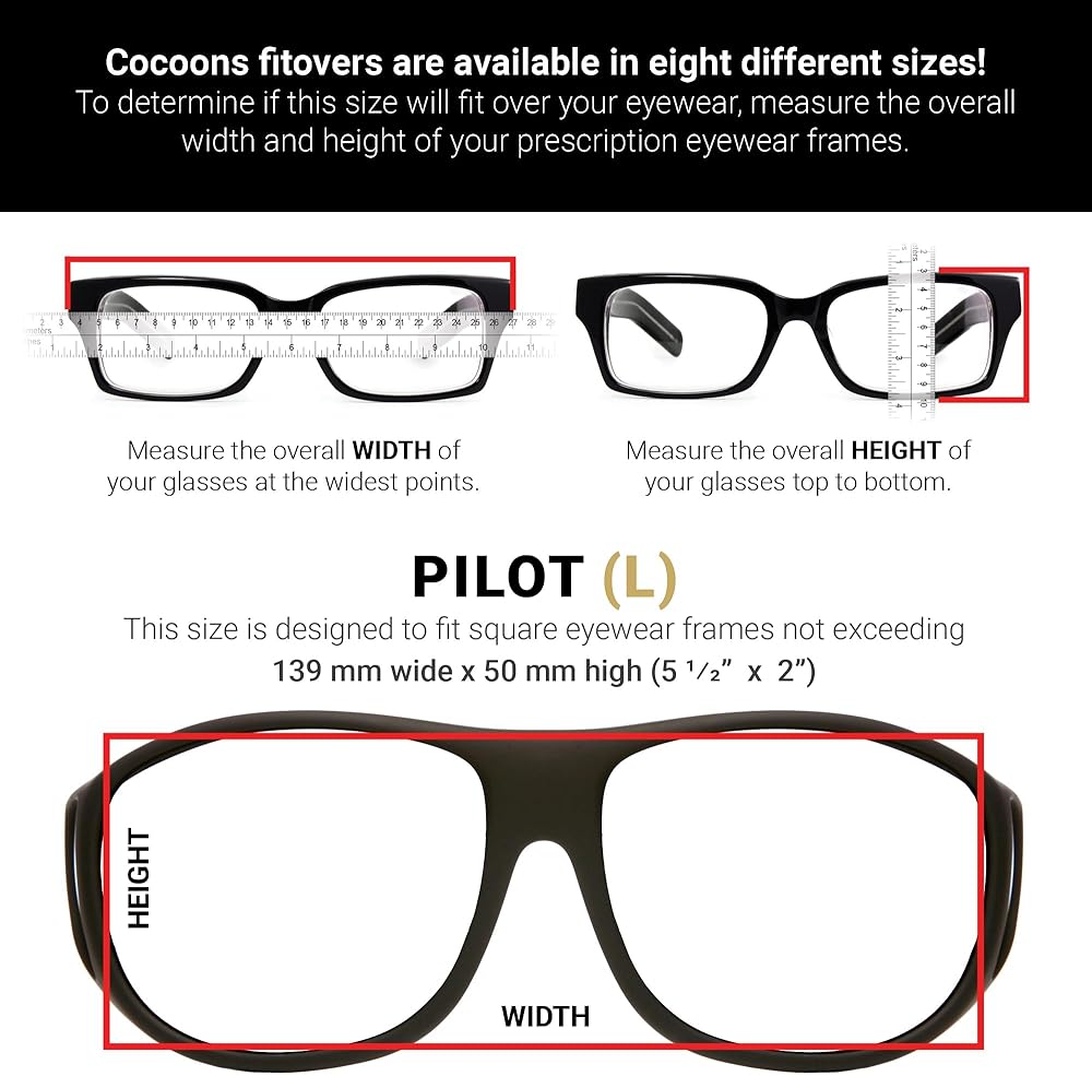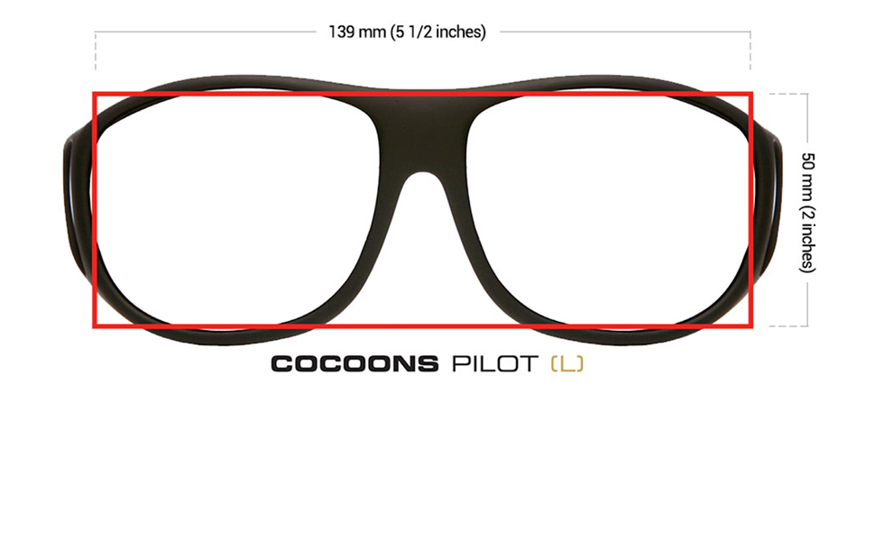 Eight Sizes – Cocoons are available in eight sizes to completely fit over most eyewear styles. Is Pilot (L) the correct size? The Pilot (L) fits over eyewear not exceeding 139 mm wide x 50 mm high. Visit the Cocoons store for additional options and sizes.