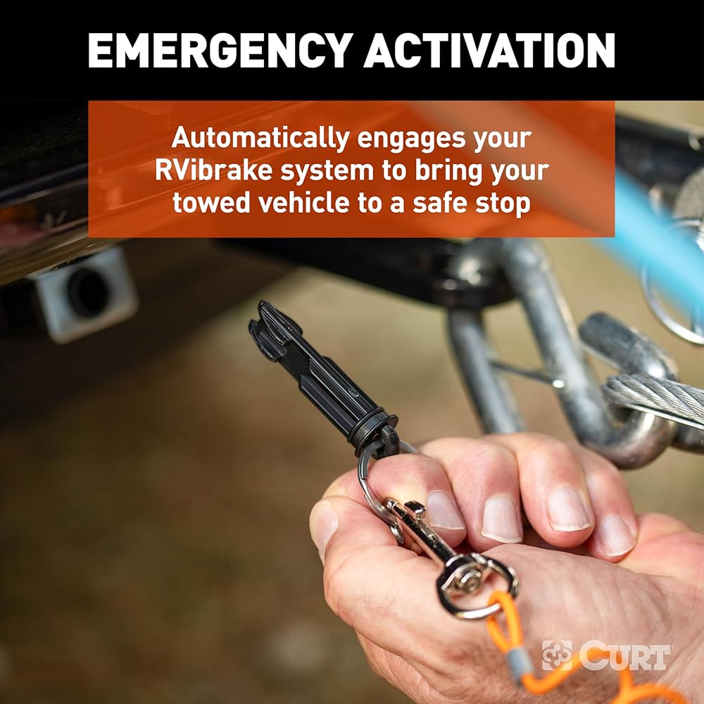 The CURT breakaway system for RVibrake is a must-have for safer, more secure towing. It's designed to automatically activate your RVibrake braking system if your hitch ever fails, helping prevent runaway vehicle incidents and giving you better control in emergencies. Installation is fast and simple, taking just 30-45 minutes. With clear instructions and all necessary parts included, even first-time RVers can set it up with ease. This breakaway system works with all RVibrake flat tow braking systems, so no matter which model you have, it's ready to provide reliable protection. Its universal design makes it easy to integrate into your existing setup, ensuring your brake system is properly supported every time you tow. Plus, since breakaway systems are legally required in most U.S. states and Canada, adding this system helps you stay safe and compliant on the road. For added reassurance, the CURT breakaway system comes with a limited lifetime warranty (one-year parts, one-year finish), giving you reliable coverage for your travels. With its simple setup, broad compatibility, and trusted safety features, this system offers essential protection for you, your RV, and your loved ones wherever your adventures take