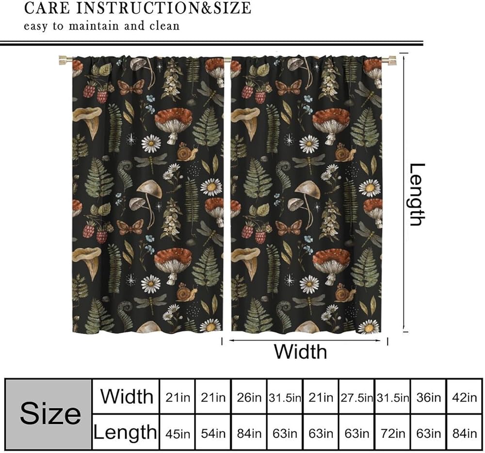 PACKAGE & SIZE: Each package includes 2 curtain panels, each measuring 21" W x 45" L. The curtain panels have 3" rod pockets, compatible with both standard and decorative curtain rods.