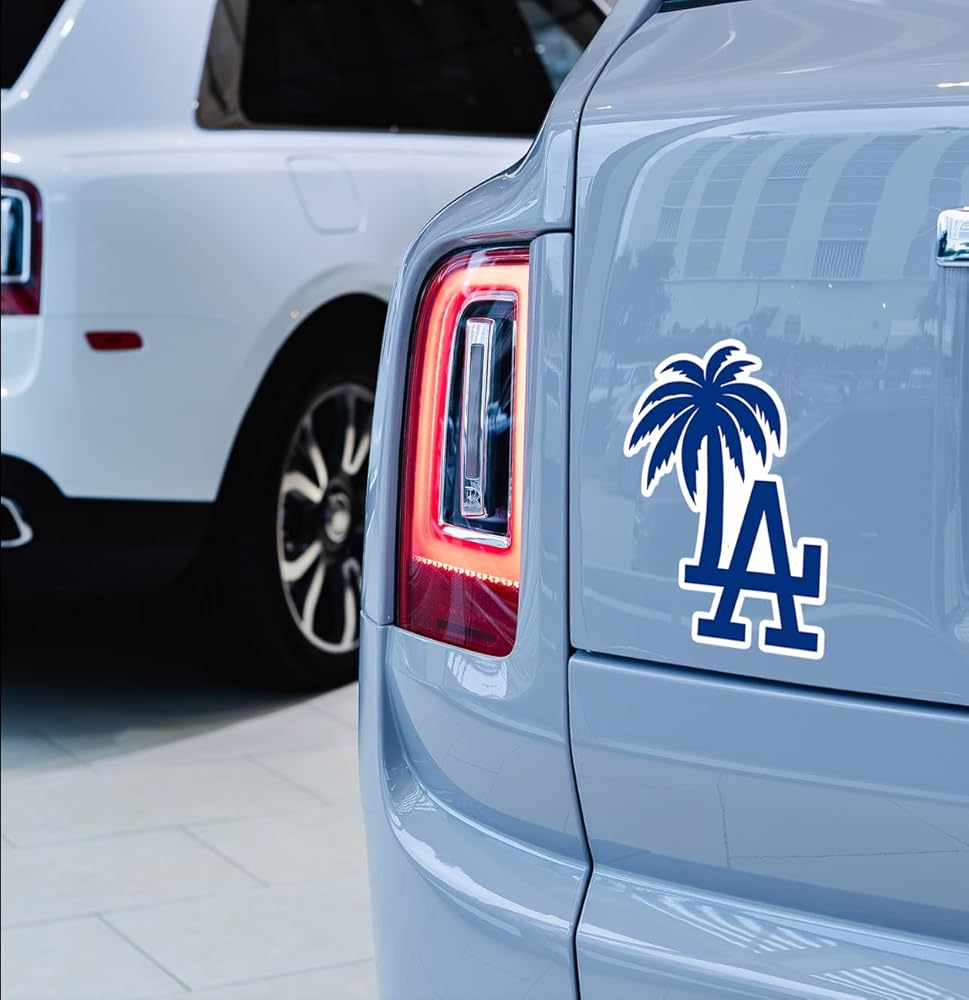 Show your LA pride with these stylish palm tree logo stickers! Perfect for adding a touch of West Coast flair to your car, laptop, window, or any smooth surface. These high-quality white stickers feature the iconic LA letters combined with a palm tree design in striking navy blue. Each sticker is professionally cut with precise detailing, making it easy to apply and maintain a clean look. Whether you're a sports enthusiast, California native, or simply love the LA lifestyle, these versatile decals are an excellent way to personalize your belongings. The bold design stands out while maintaining a sophisticated appearance that works well on any color surface. These stickers are sized appropriately for various applications and maintain their vibrant appearance over time. Transform your everyday items with these premium LA palm tree stickers that capture the essence of Los Angeles style.
